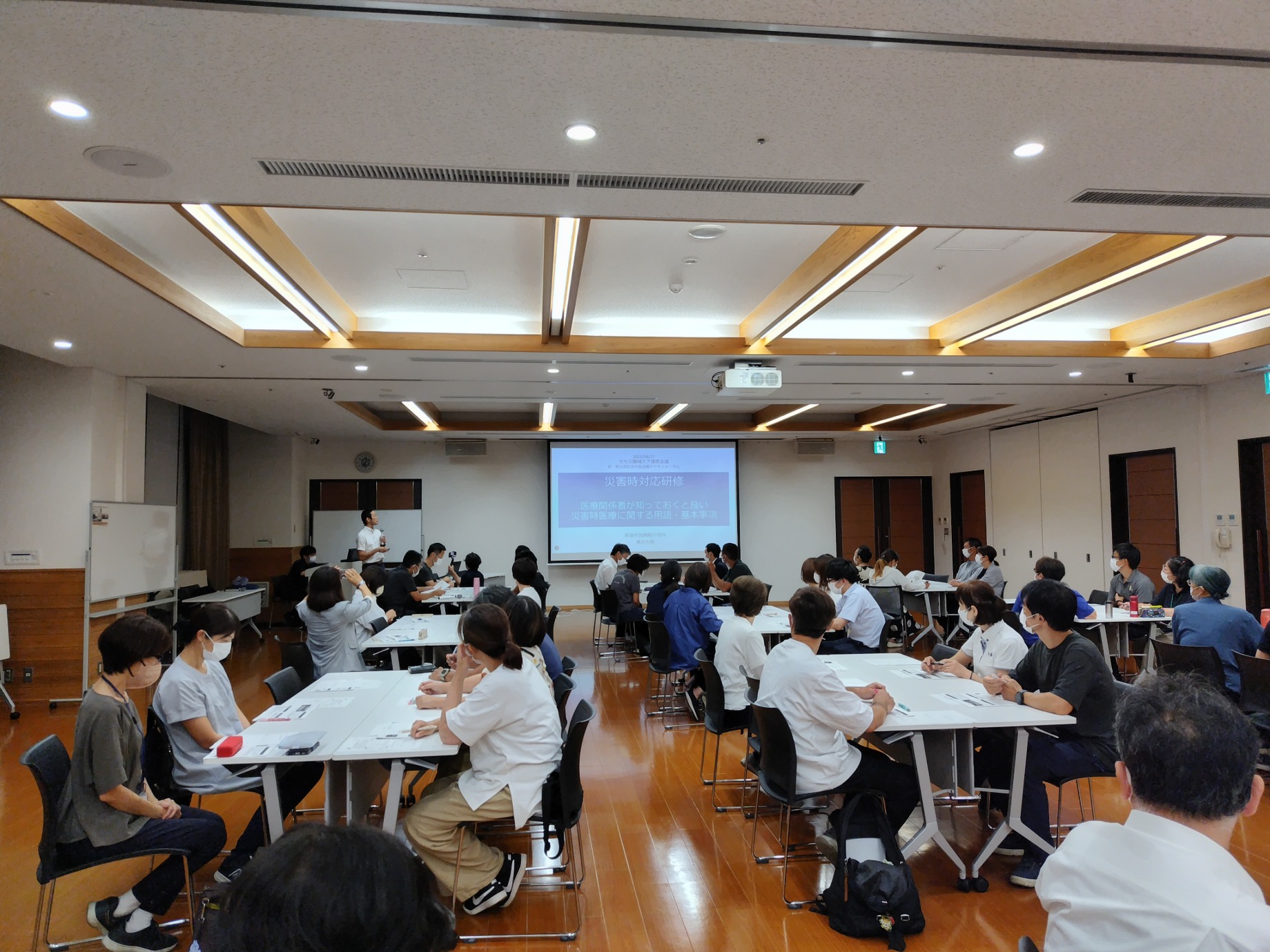 今回は元秩父市立病院小児科医長で、現在は新潟市民病院でご活躍されている黒沢大樹先生を講師に迎え、「災害時対応研修」を行い、80名を超える皆さまと一緒に学びました。